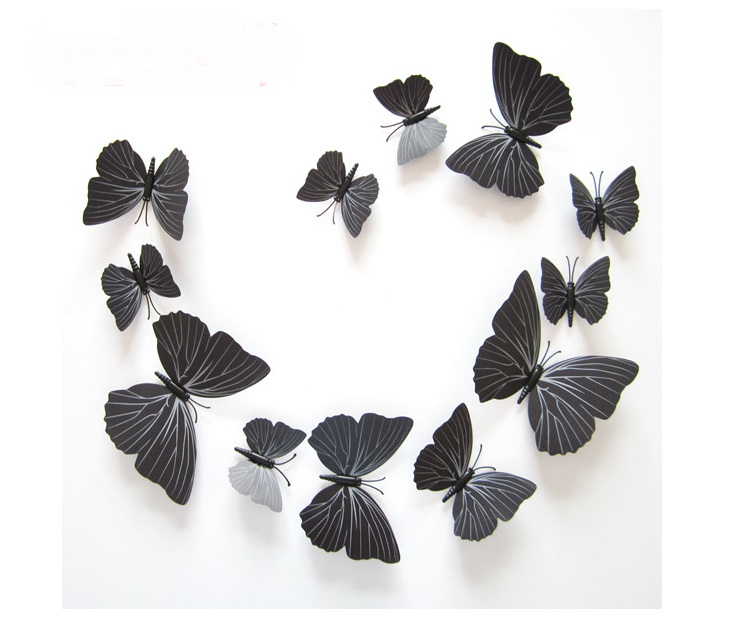 Набор декоративных 3D бабочек 12 шт (чёрные)