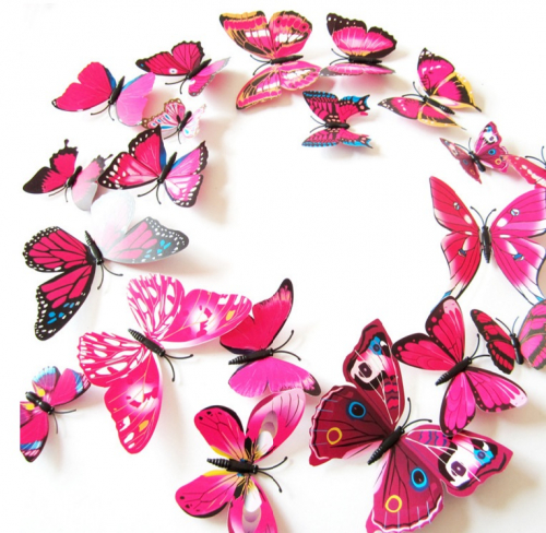 Набор декоративных 3D бабочек 12 шт (розовые)