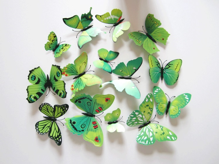 Набор декоративных 3D бабочек 12 шт (зелёные)