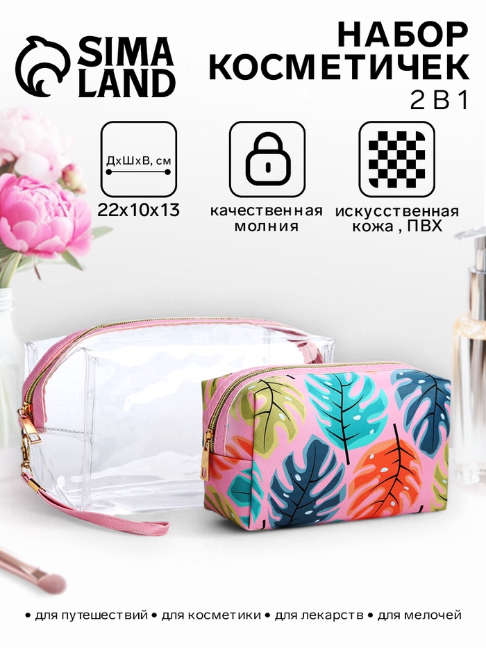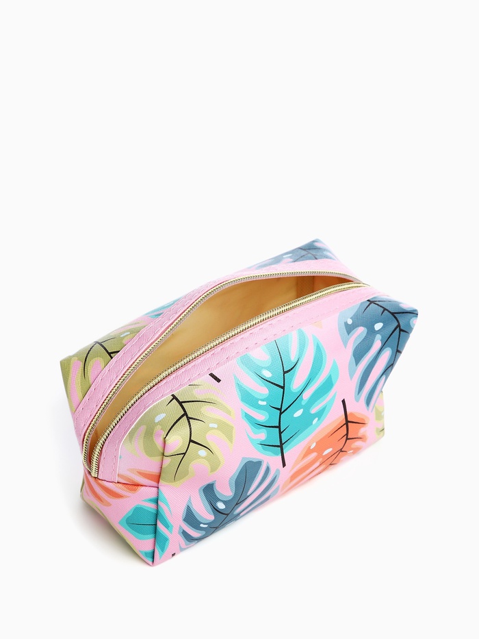 Набор объёмных косметичек на молниях 2 в 1, с ручкой, с принтом, розовый