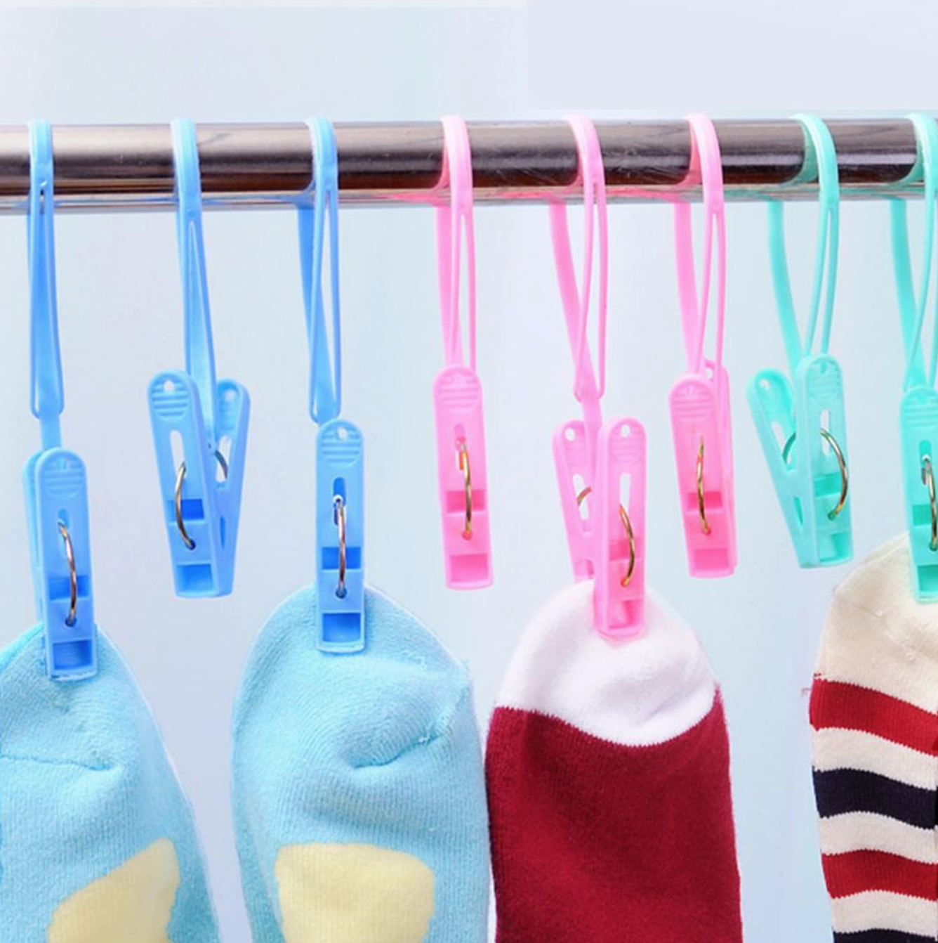 Удобные прищепки со специальными креплениями, которые можно использовать для сушки белья без верёвки.