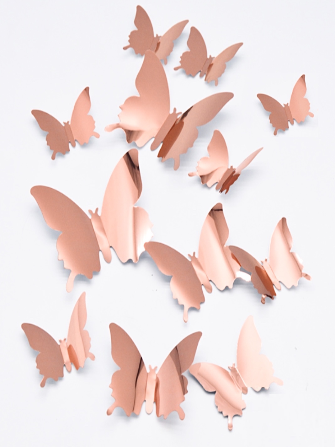 Набор зеркальных 3D бабочек 12 шт (розовое золото)