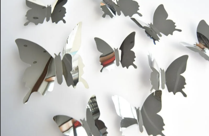 Объёмные зеркальные бабочки помогут оживить интерьер Вашей квартиры и будут напоминать о лете. В наборе 2 штуки 11 см, 2 штуки 8 см, 8 штук 5 см. Бабочки с помощью двустороннего скотча (идёт в комплекте).