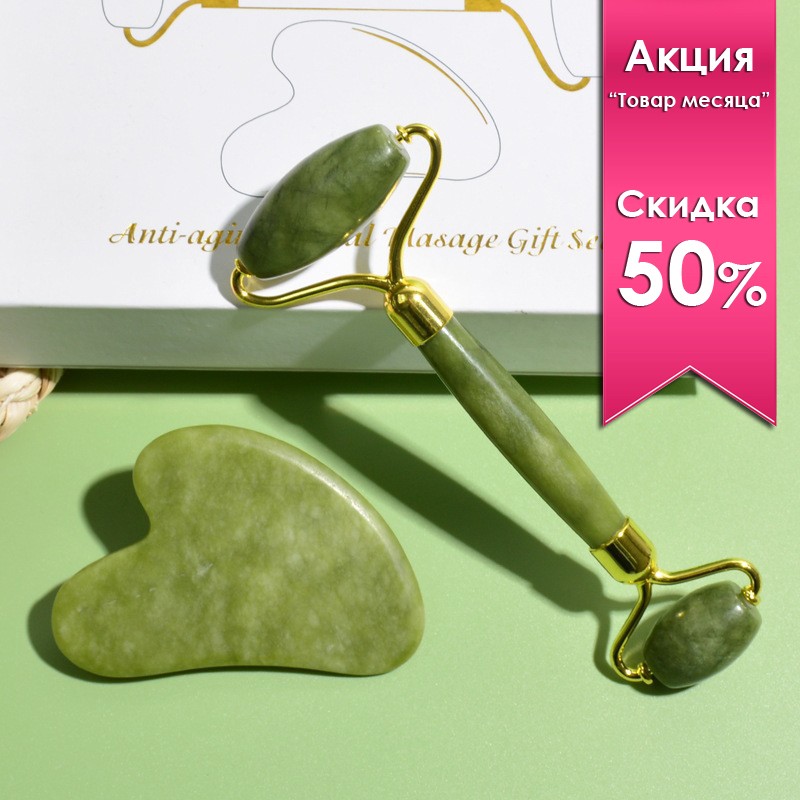 Нефритовый набор для массажа Гуаша (Ролик ГЛАДКИЙ + скребок)