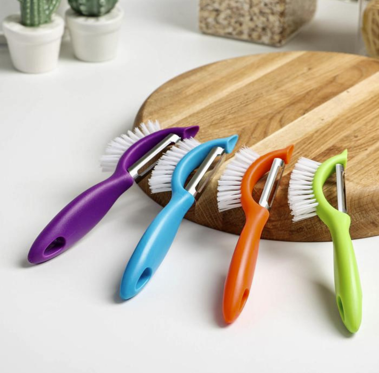 Удобная овощечистка со специальной щёточкой, помощница для хозяйки в «борьбе» за чистые овощи и фрукты.
