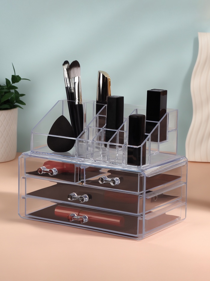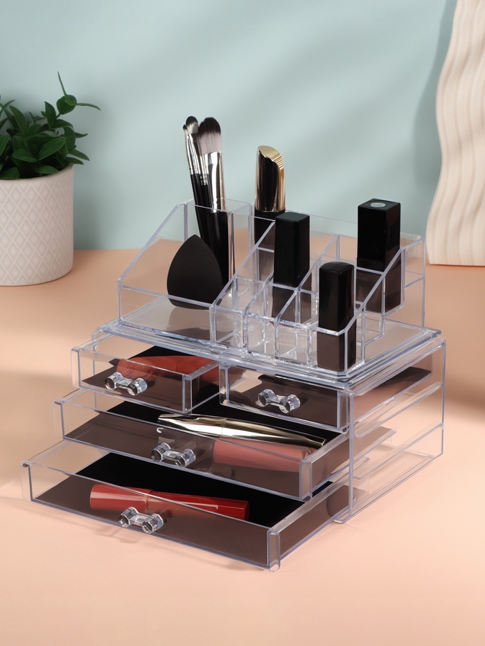 Бокс для хранения косметики, 20 секций, 23.5×14.5×19 см, 4 выдвижных ящика, прозрачный