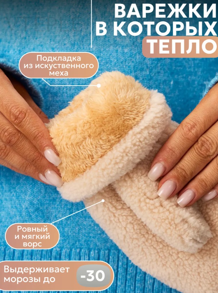 Варежки (мех внутри) БЕЖЕВЫЙ,ЧЕРНЫЙ,ГРАФИТ,СЛИВКИ