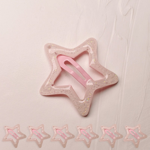 Заколки звездочки «клик-клак» с блестками 6 шт. Цвет: СЕРЫЙ