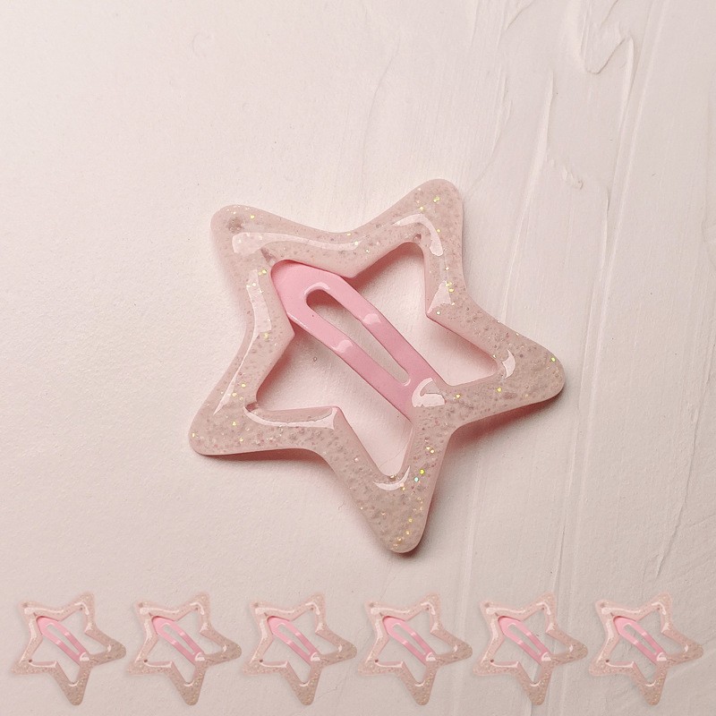 Заколки звездочки «клик-клак» с блестками 6 шт. Цвет: СВЕТЛО-РОЗОВЫЙ
