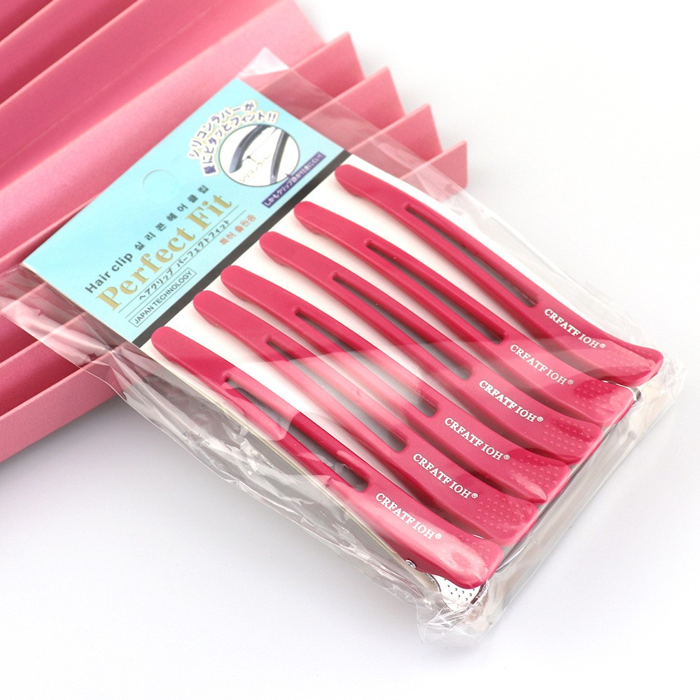 Зажим для волос парикмахерский с силиконовыми вставками, Набор 6 шт. РОЗОВЫЕ