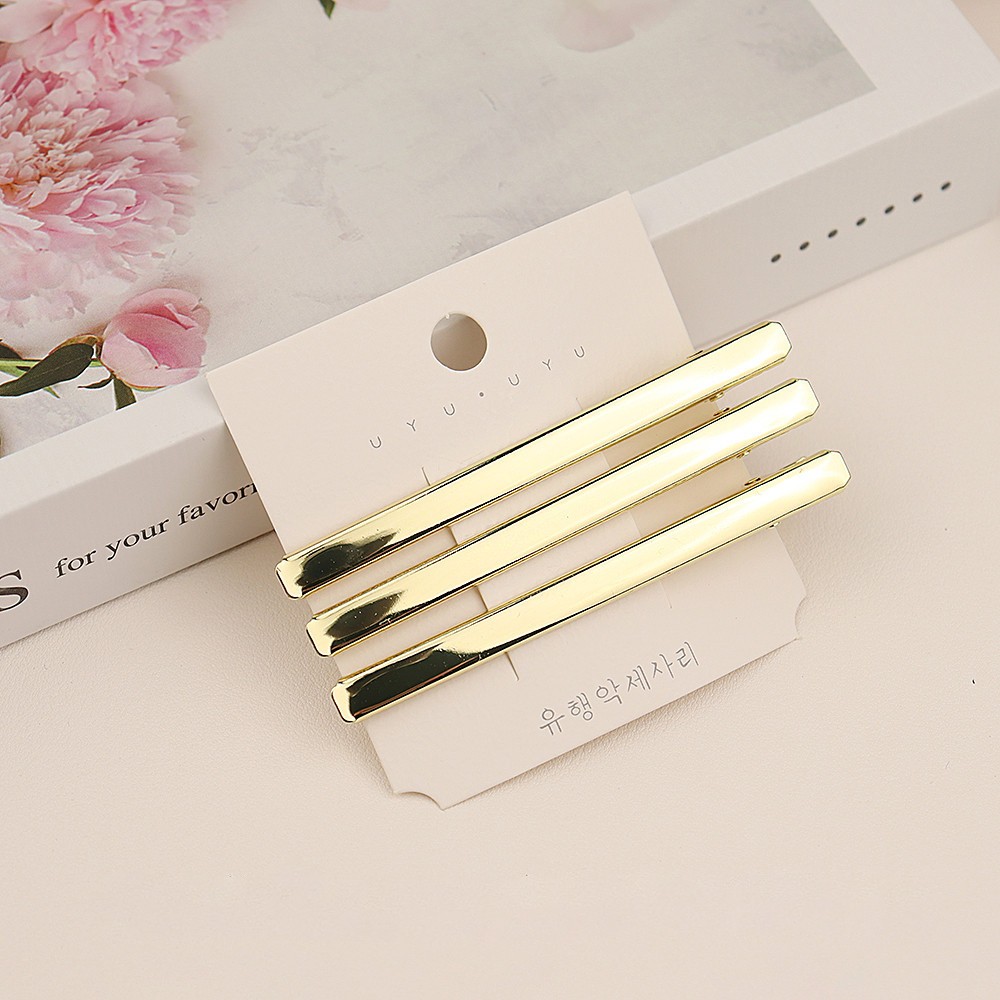 Зажимы для волос золотые прямоугольные 3 штуки, длина 8 см.