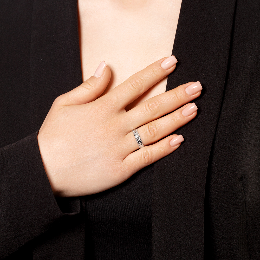 10-2186 Кольцо (Господи Спаси и Сохрани) из серебра родированное литьё