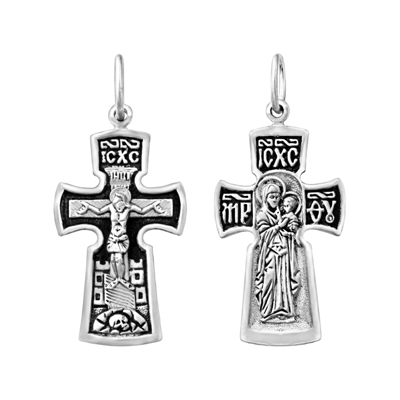 2-037-3 Крест (Образ Одигитрия) из серебра литье частичное чернение