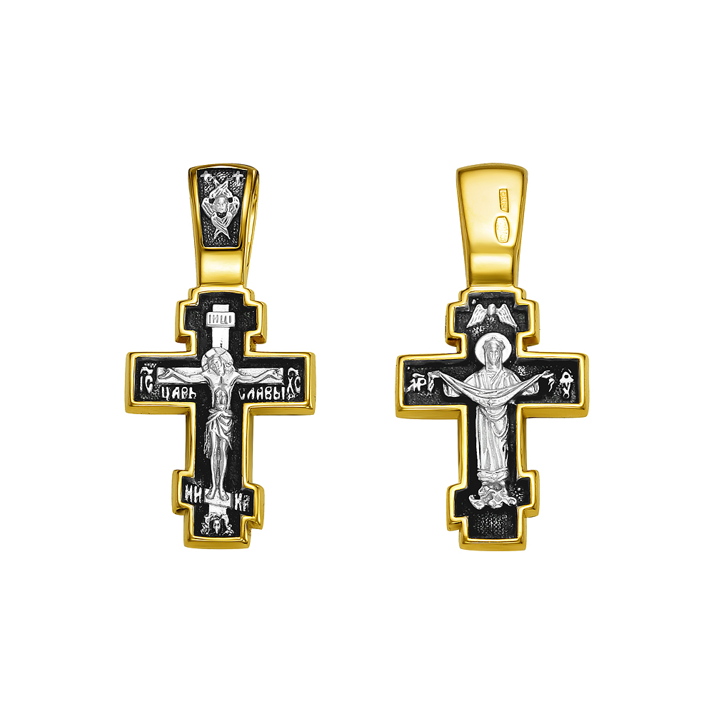 2-142-4 Крест (образ Покрова) из серебра литье выборочное золочение ручная работа