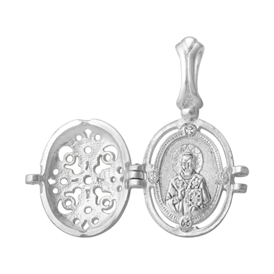 3-033-1.0003 Мощевик (Свт. и чудотв. Николай) из серебра литье с фианитом топаз