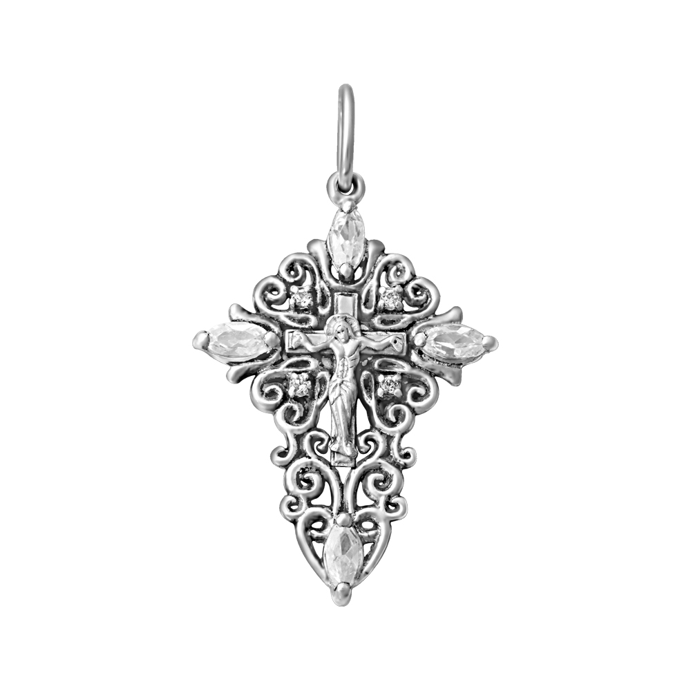 3-071-3 Крест с фианитом выборочно черненный серебро 925*