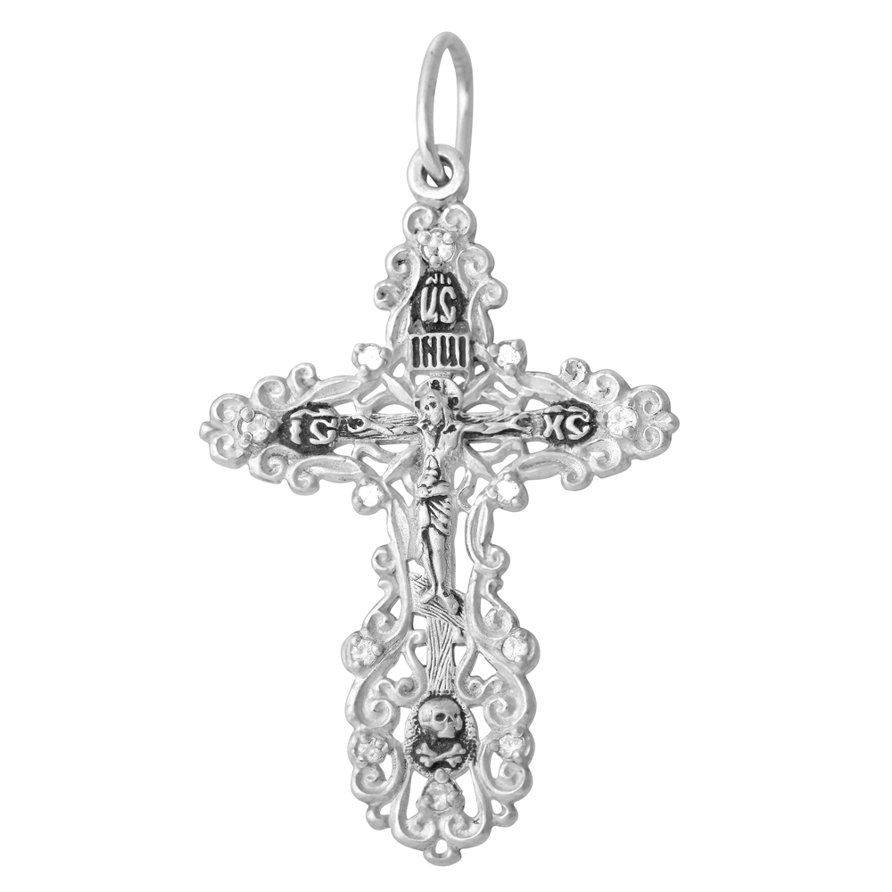 3-086-3 Крест с фианитом выборочно черненный серебро 925*