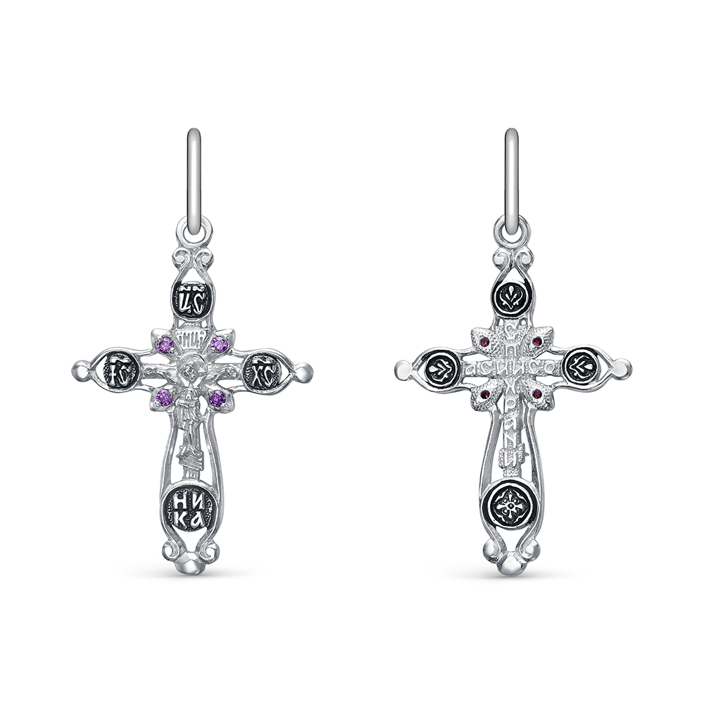 3-091-3 ам Крест с фианитом выборочно черненный серебро 925*