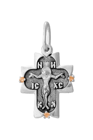 3-096-3 Крест с фианитом выборочно черненный серебро 925*
