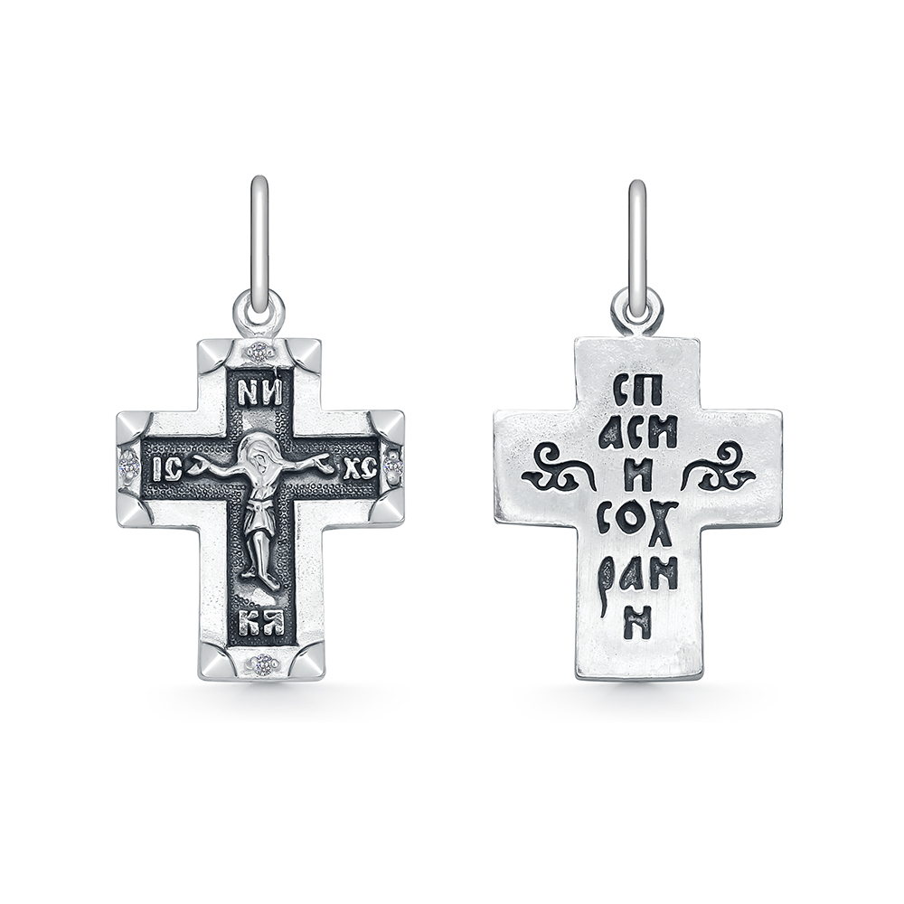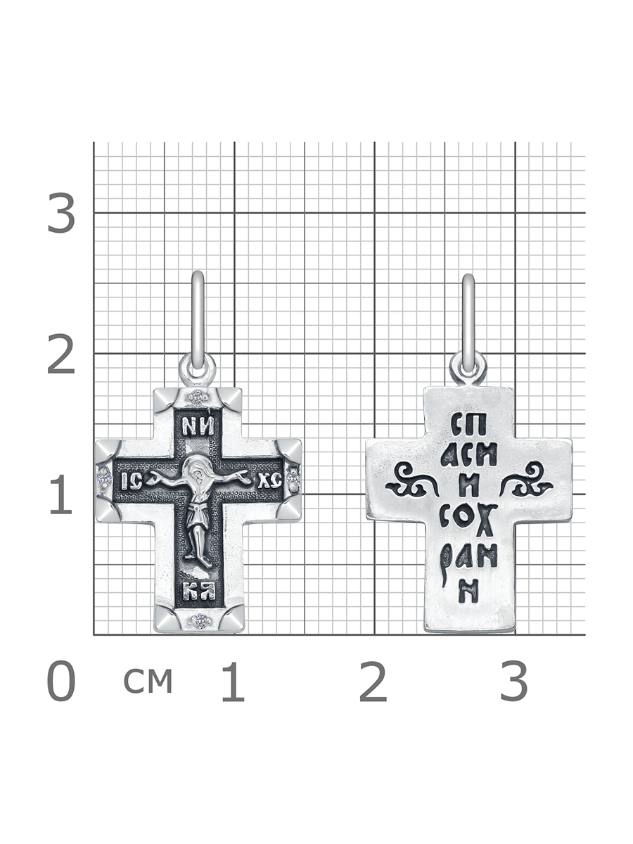 3-097-3 топ Крест с фианитом выборочно черненный серебро 925*