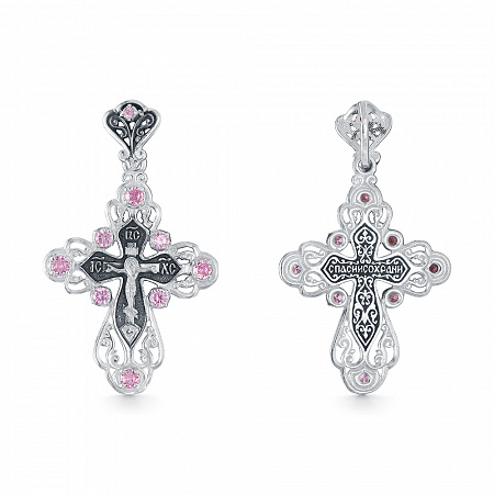 3-107-3 роз Крест с фианитом выборочно черненный серебро 925*