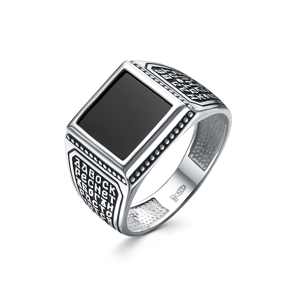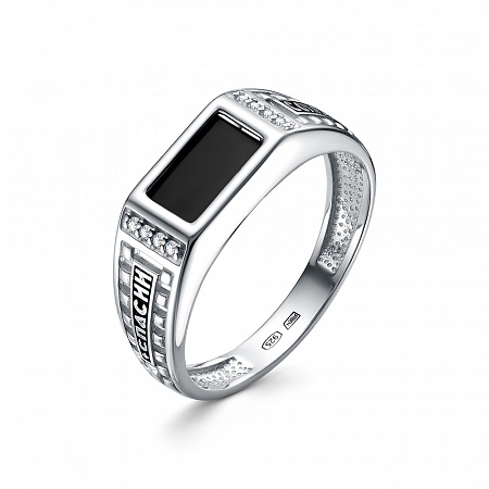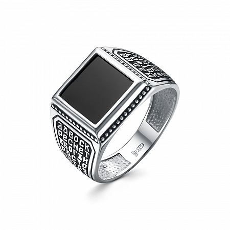 60-2583 Кольцо (Спаси и Сохрани) из серебра ч/ч литьё с нат.камнем