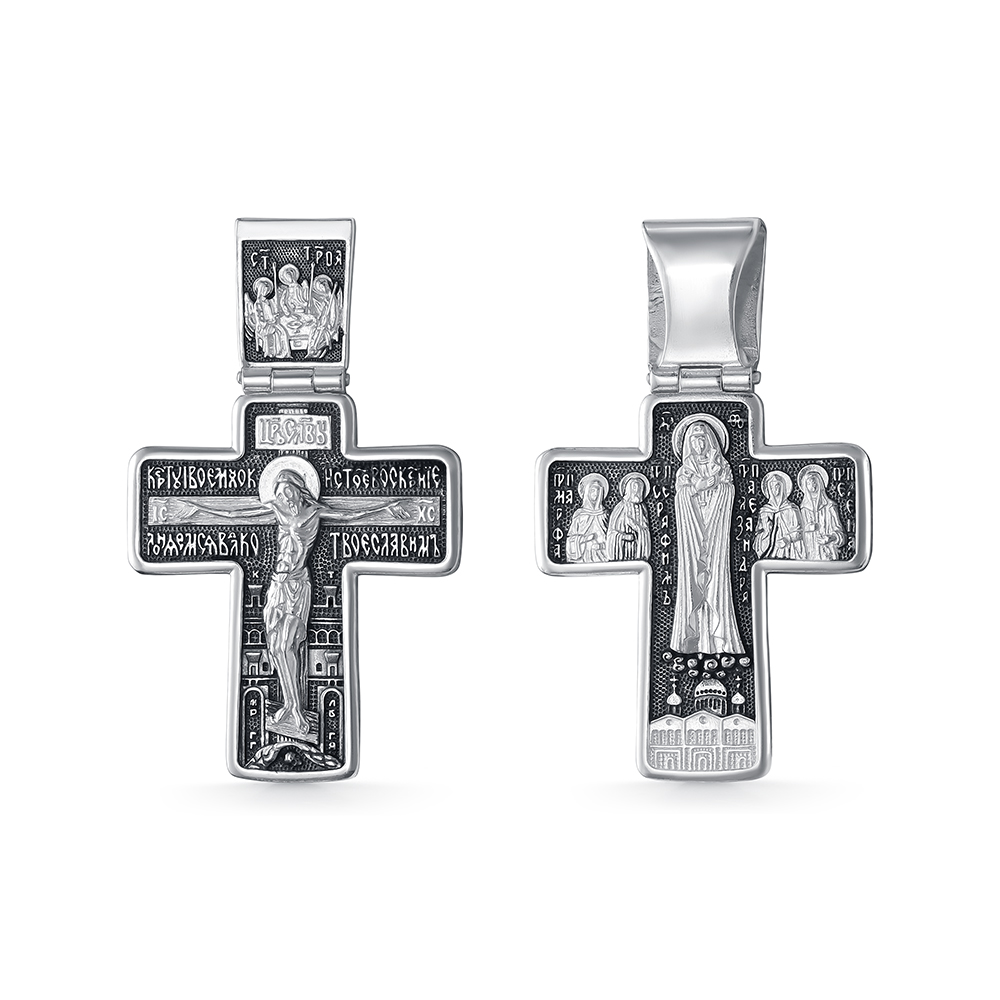 63-1703 Крест (БМ Умиление с Дивеевскими святыми) из серебра литье частичное чернение