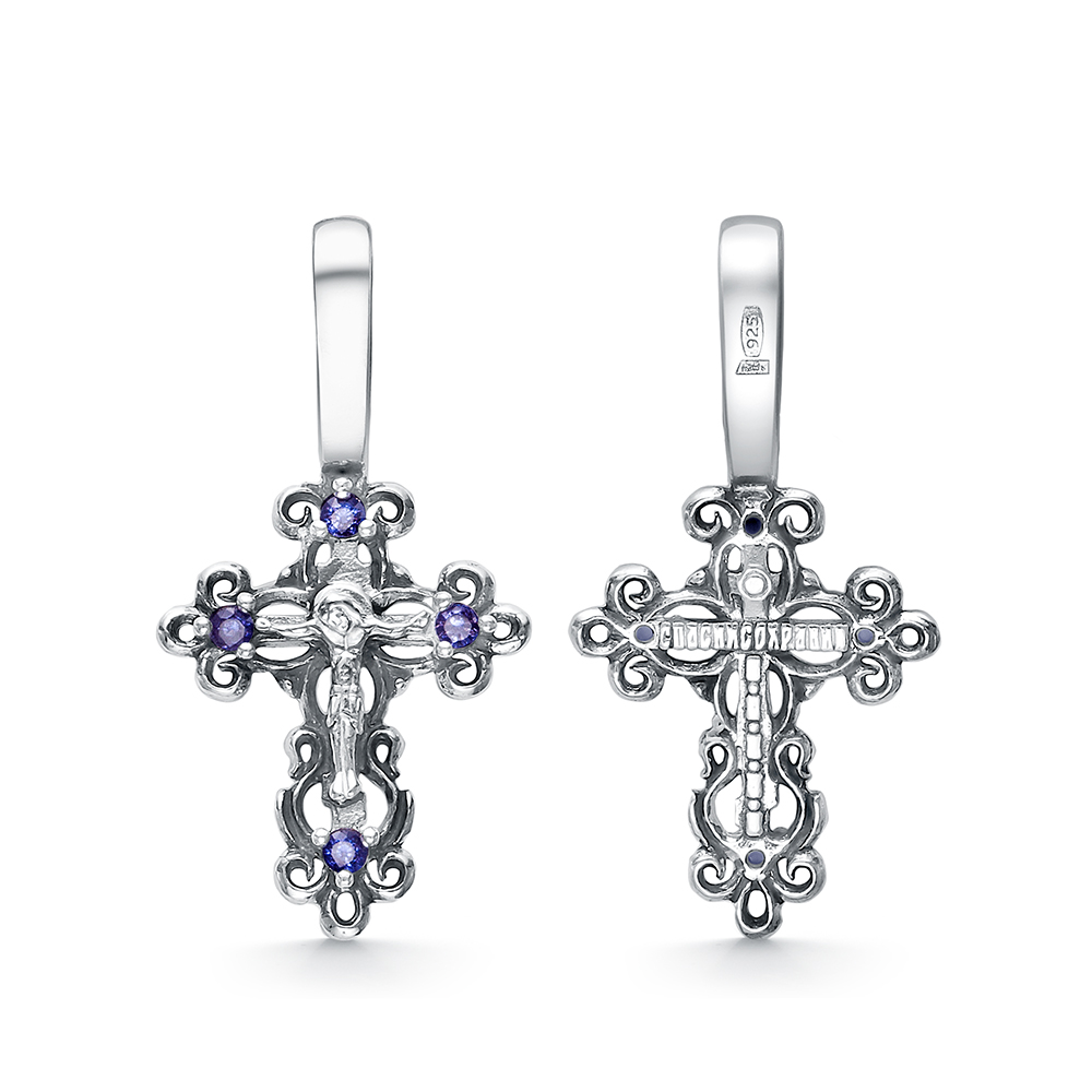 63-2473.0001 Крест с фианитом выборочно черненный серебро 925*