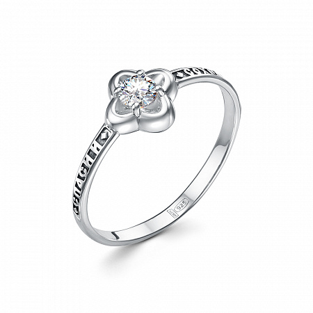 8-033-3 Кольцо с фианитом выборочное чернение серебро 925*