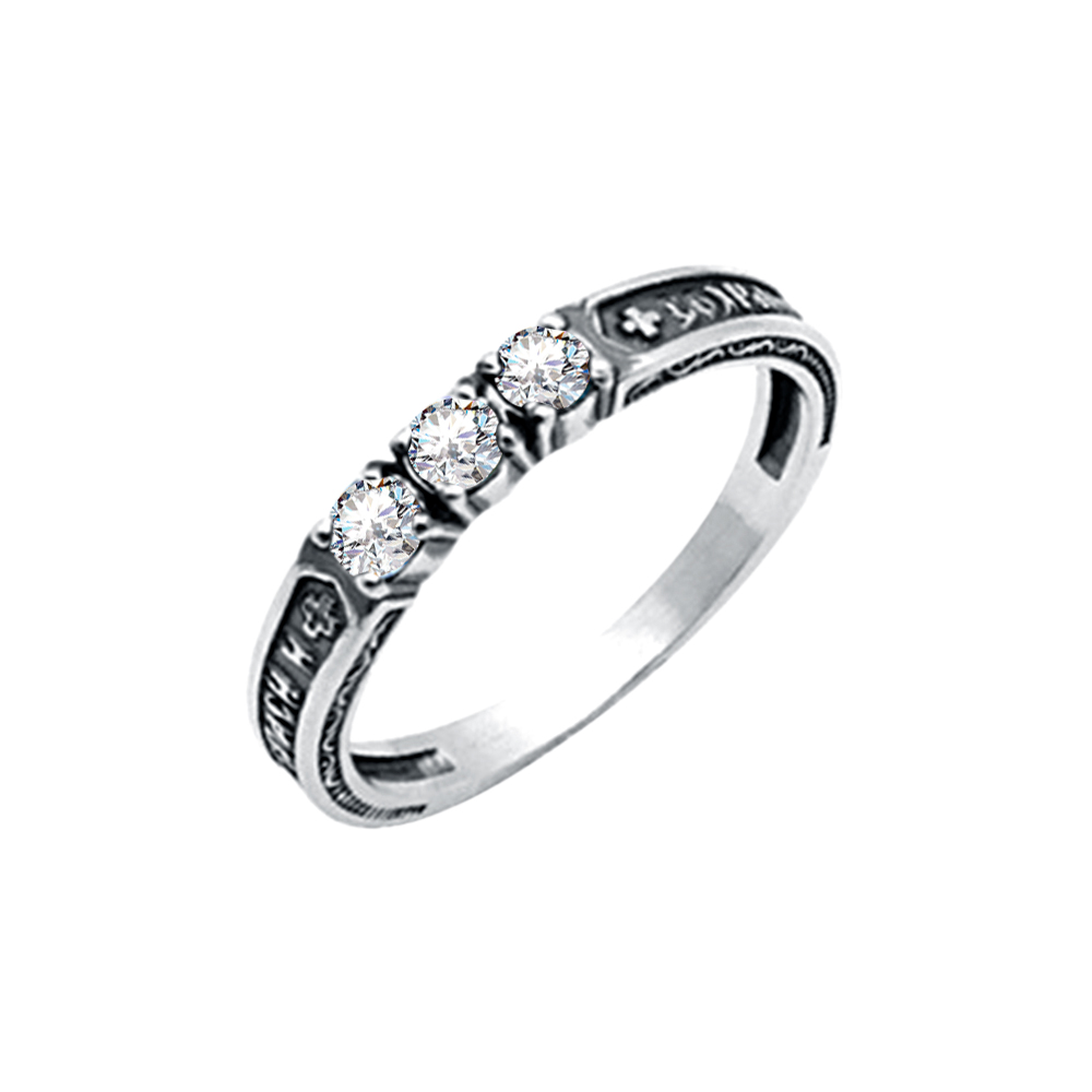 8-057-3 Кольцо с фианитом выборочное чернение серебро 925*