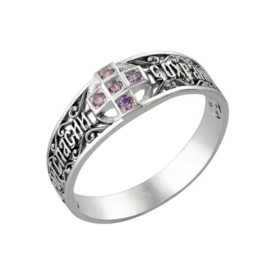 8-084-3 Кольцо с фианитом выборочное чернение серебро 925*