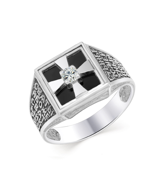Вставка: Оникс квадрат пл. 10.0 1 шт. 0 гр., Фианит круг 3.5 бц. 1 шт. 0,0624 гр.