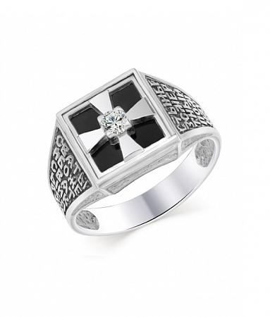 Кольцо (Георгий Победоносец) из серебра ч/ч литьё с фианитом