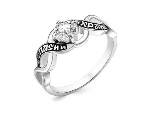 10-1132 Кольцо (Господи Спаси и Сохрани) из серебра родированное литьё с фианитом