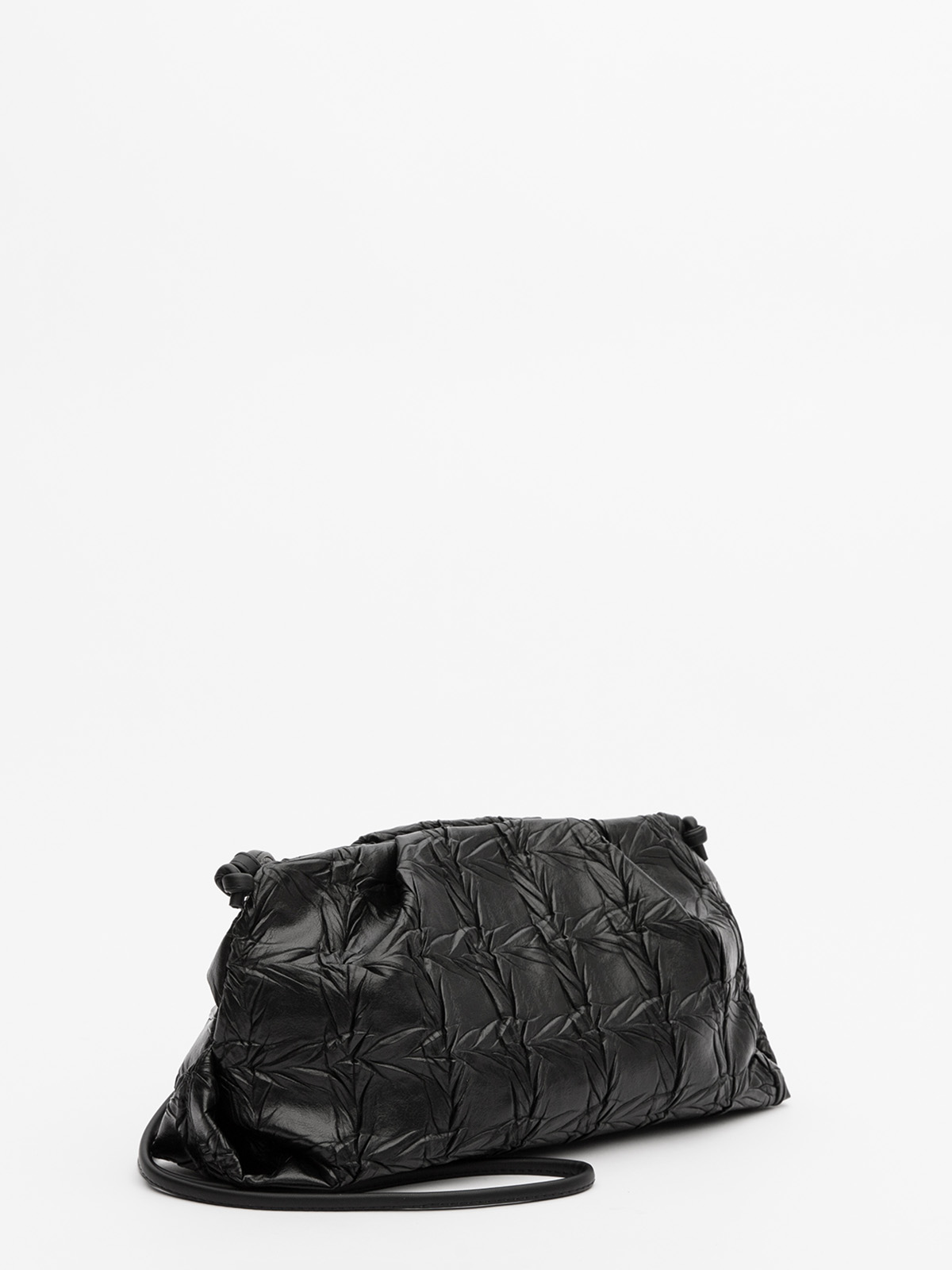 Формат сумочки идеально подходит для повседневного использования. Снаружи сумочка нежная и утонченная, а внутри – удобная и вместительная. Эффект мятой кожи смотрится ярко и оригинально.