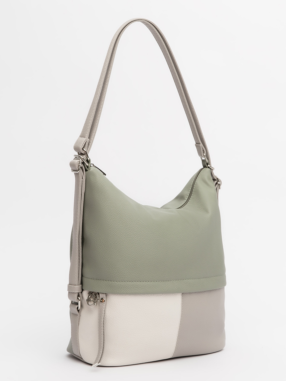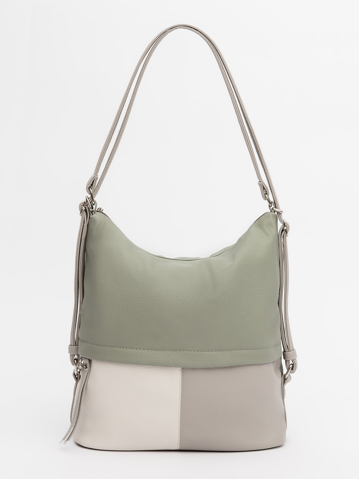 Модель легко меняет форму, позволяя носить её на плече, через плечо или как рюкзак — в зависимости от ситуации. Сочетание нескольких цветов делает сумку стильным акцентом в любом образе. Внутри — продуманная организация: основной отдел, карман на молнии для ценных вещей, отделение для телефона и дополнительный большой карман. Функциональность и неординарный дизайн в одной сумке — идеальный выбор для тех, кто ценит комфорт и возможность всегда иметь под рукой всё необходимое.