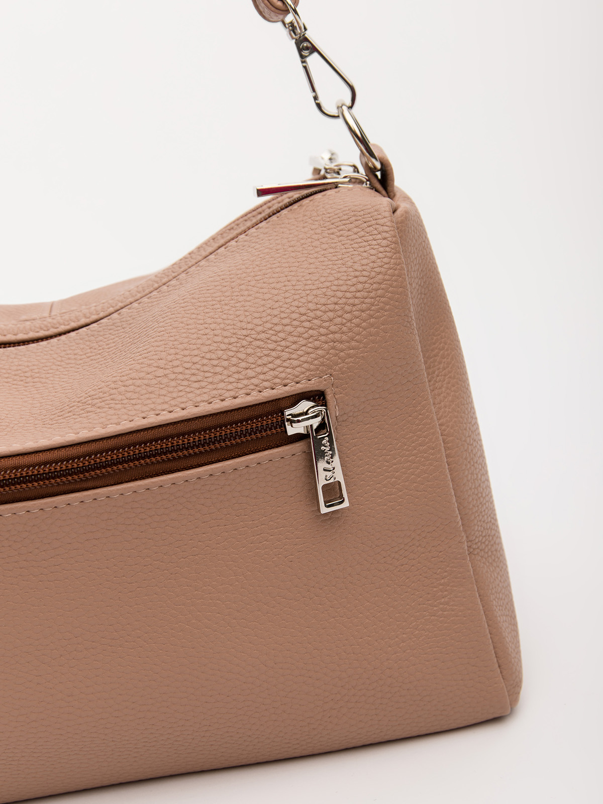 Сумка кросс-боди среднего размера — удобный и стильный аксессуар для повседневного использования. Оснащена двумя отделами на молниях, что позволяет удобно организовать пространство. Внутри расположен небольшой карман для мелочей, а на задней стороне — внешний карман на молнии. Сумка комплектуется длинным регулируемым ремнём из стропы на карабинах и короткой ручкой из винилискожи для комфортного ношения.