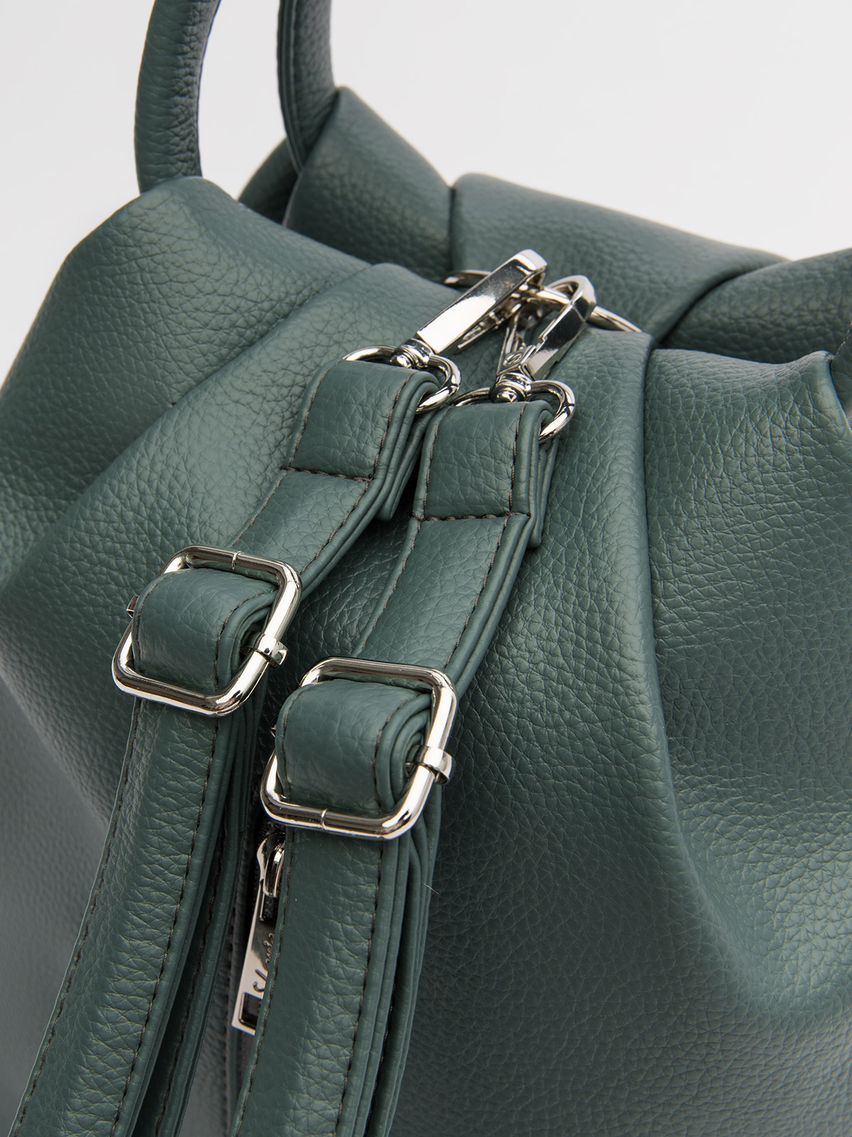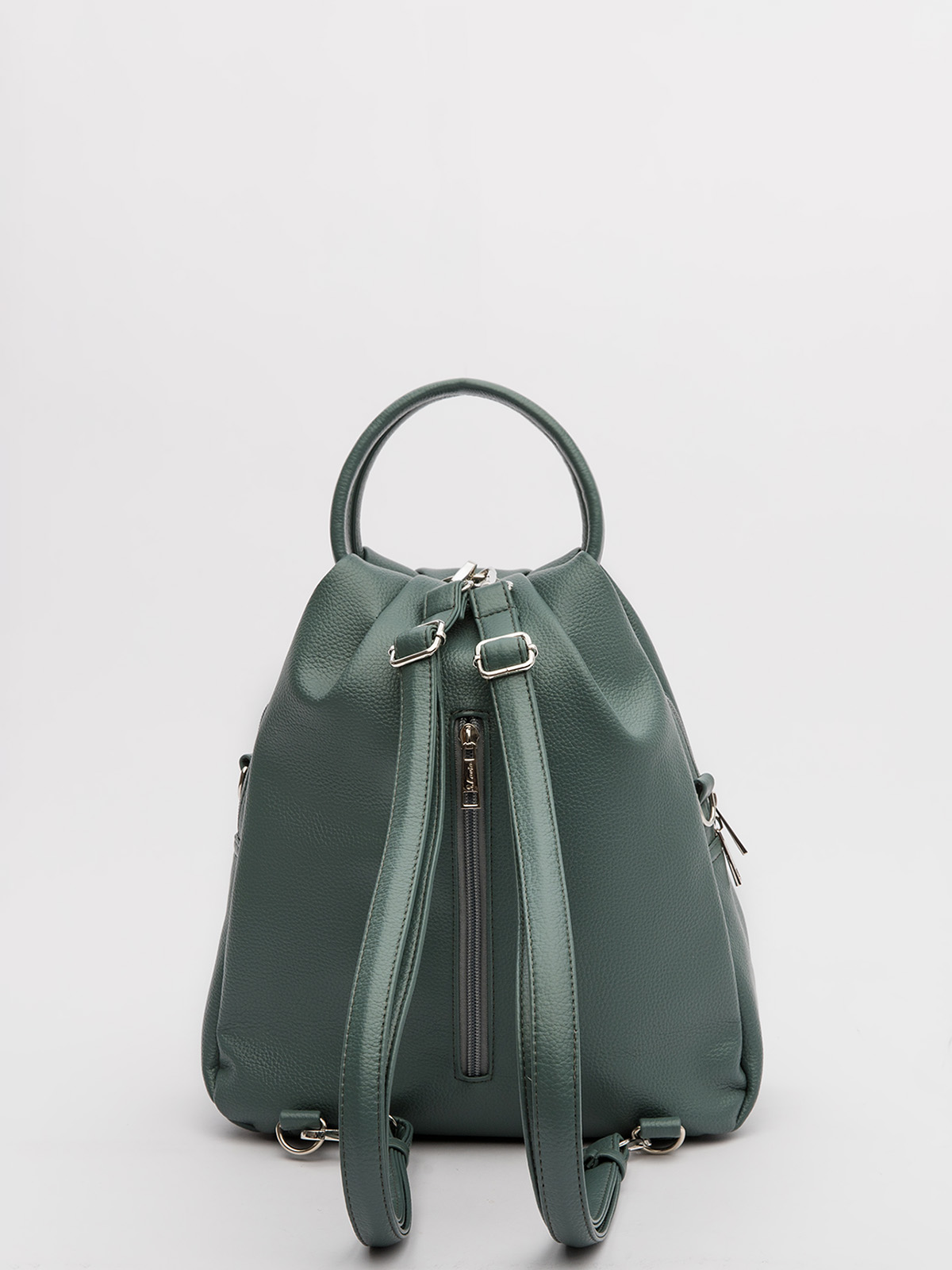 Женская сумка-рюкзак трансформер — универсальный аксессуар среднего размера для повседневного использования. Оснащена двумя круглыми ручками, её удобно носить в руке как сумку, а при необходимости — использовать как рюкзак благодаря съёмным регулируемым лямкам. Модель имеет одно вместительное отделение, внутренний и задний карманы для организации необходимых мелочей. Практичный дизайн сочетается с элегантностью и подходит для любого образа.