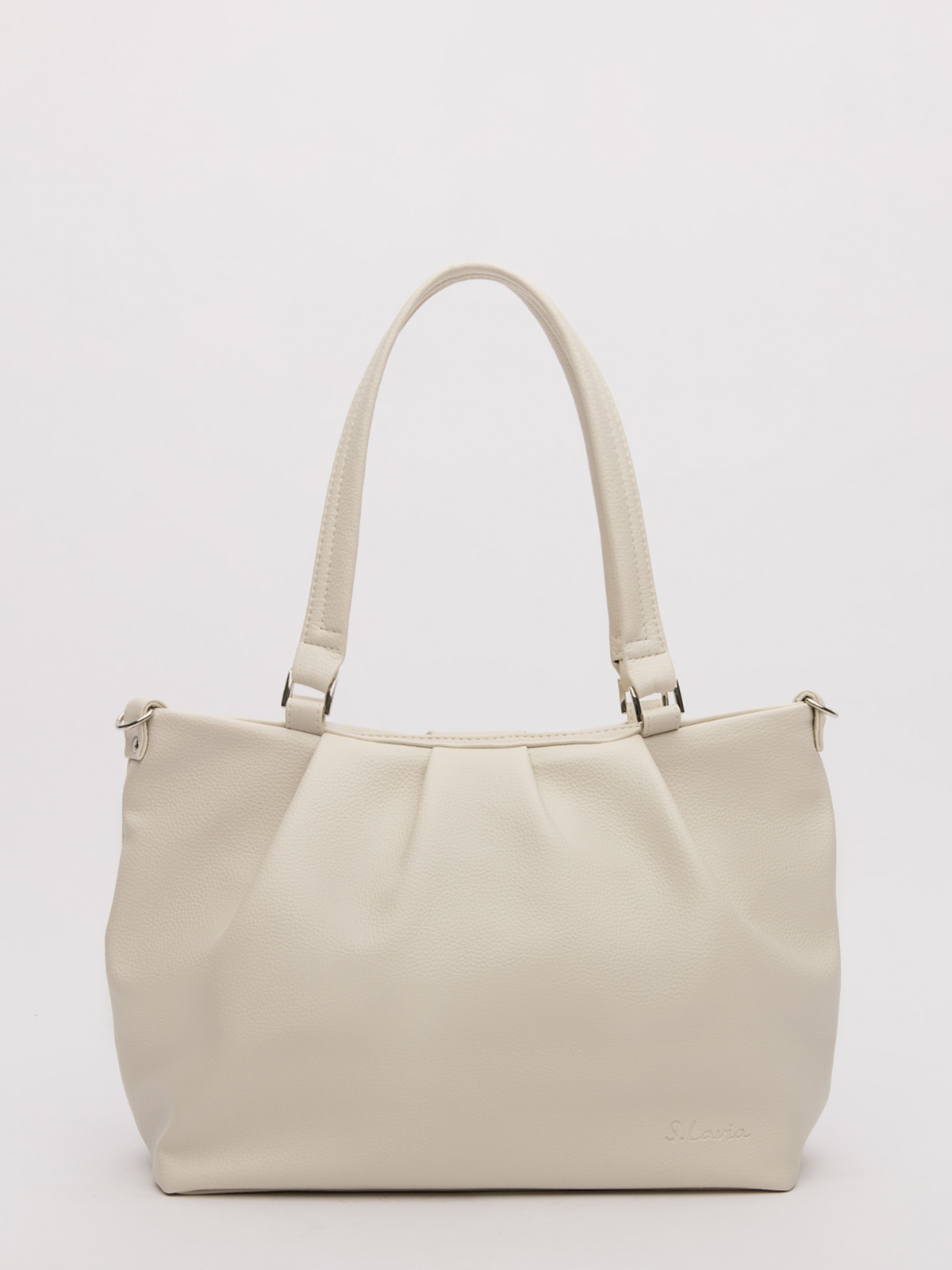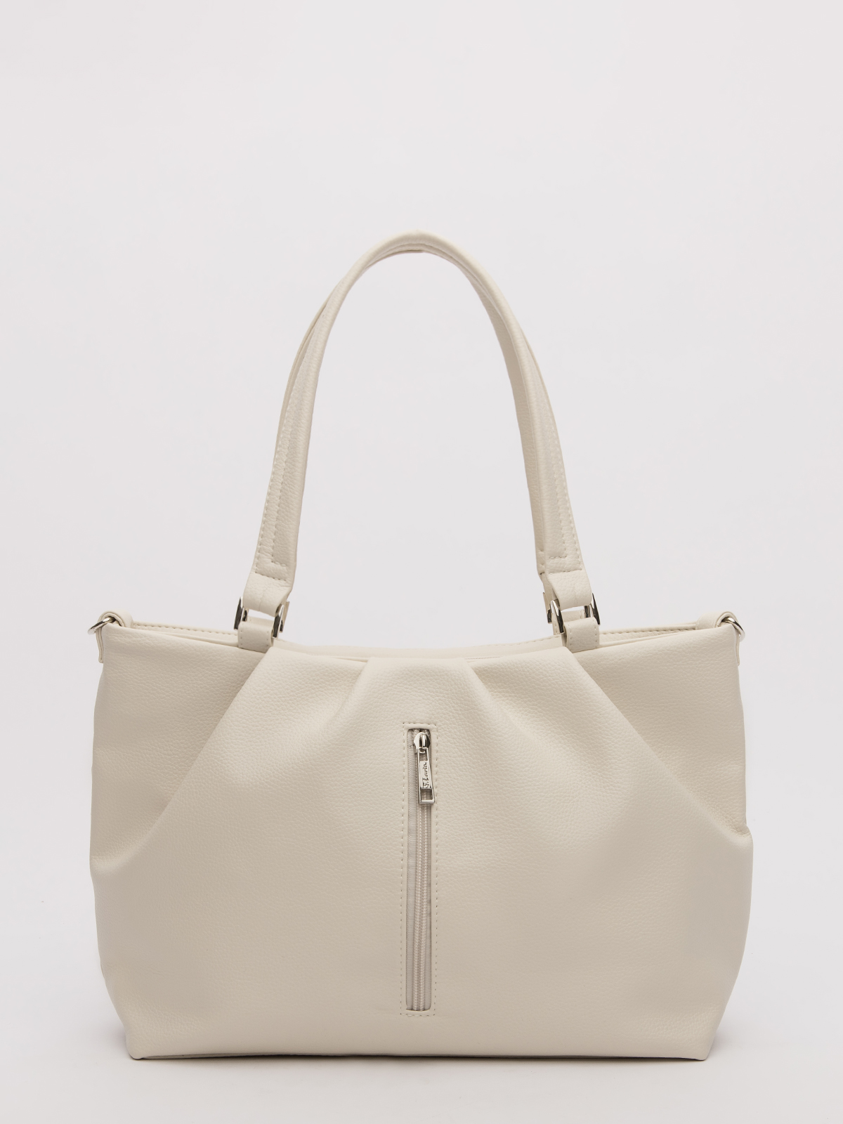 Трендовый силуэт вытянутого прямоугольника со стильными складками создаёт дополнительный объём и добавляет образу лёгкую женственность. Удобные ручки средней длины и съёмный ремень предлагают варианты ношения — от классического до более свободного. Литой декор и брендированная фурнитура подчёркивают статусность аксессуара.