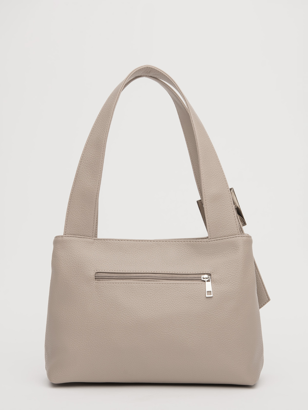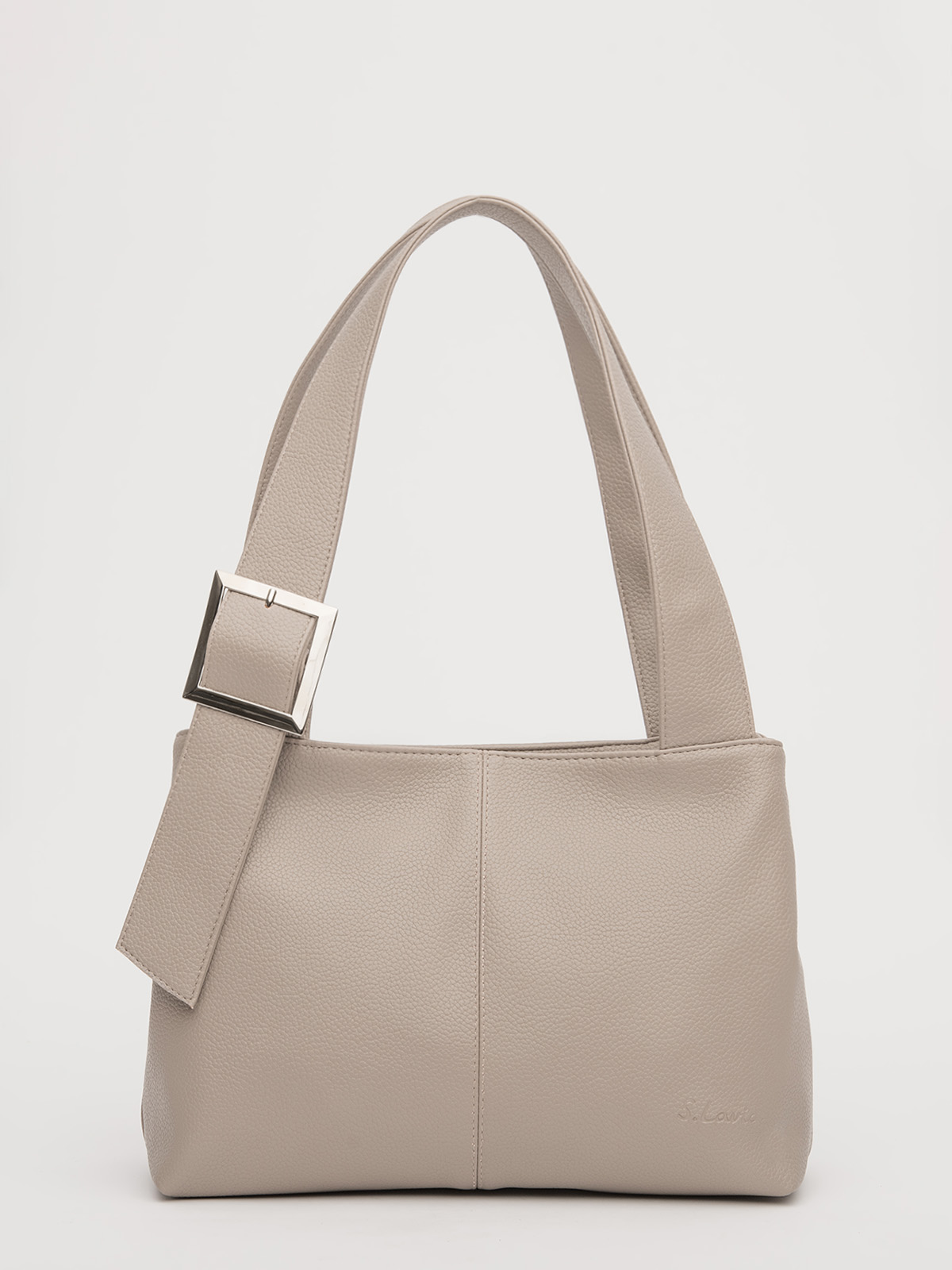 Сумка-тоут среднего размера — универсальная модель для повседневного использования. Оснащена двумя отдельными отделениями на молниях, что обеспечивает удобную организацию содержимого. Плоские широкие ручки обеспечивают комфортное ношение, а декоративная пряжка на передней части добавляет стильный акцент. На задней стороне расположен карман на молнии, внутри — практичные карманы для мелочей.