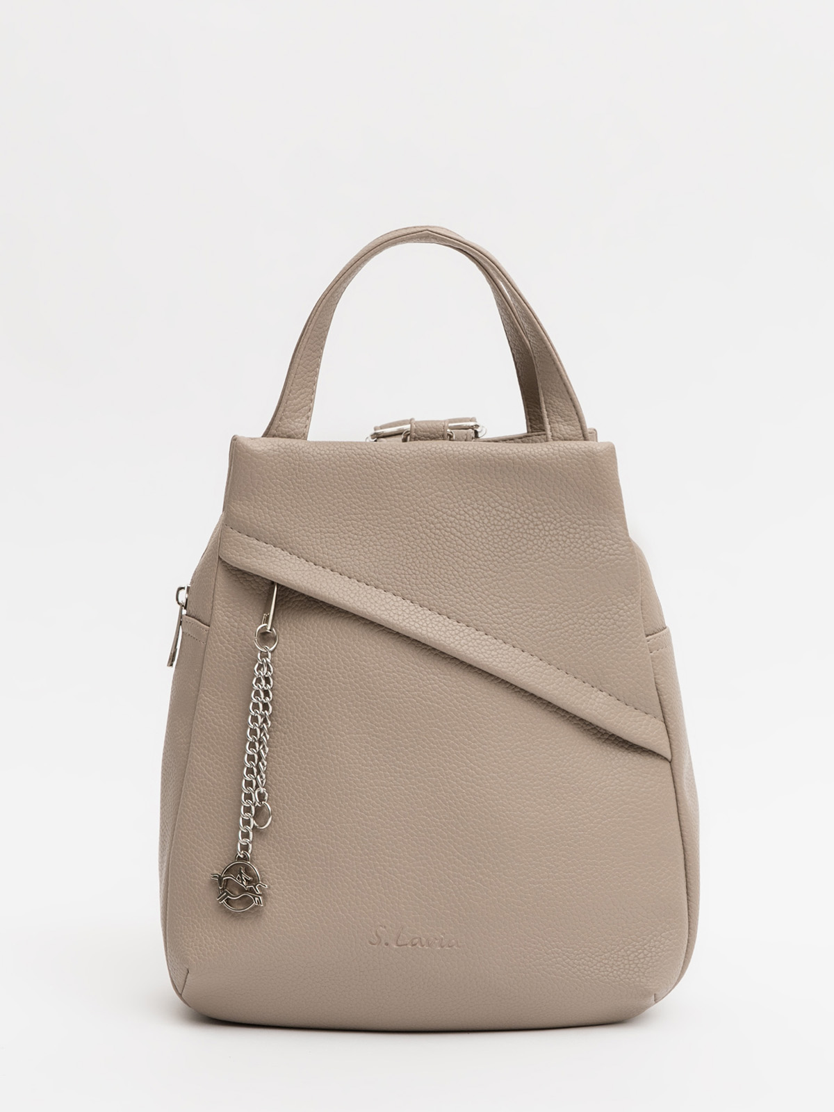 Асимметричная форма с металлическим декором сразу выделяет эту модель. Передний карман со скрытой молнией сохраняет чистые линии, добавляя внешней сдержанности. Объёмный основной отдел и продуманные карманы вместят всё необходимое, сохраняя аккуратный вид.