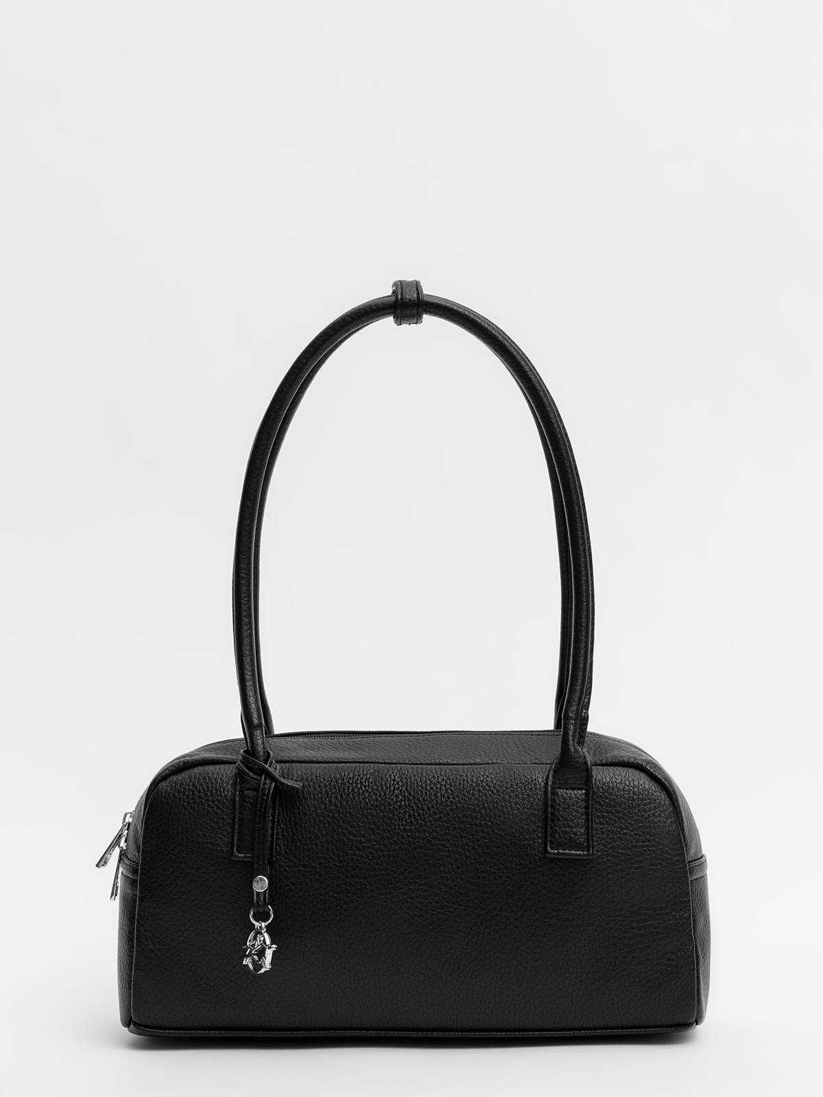 Основное отделение с удлинённой молнией на двух бегунках легко расстёгивается, а широкий бочок вмещает всё необходимое для работы и прогулок по городу. Модель представлена в классическом чёрном цвете.