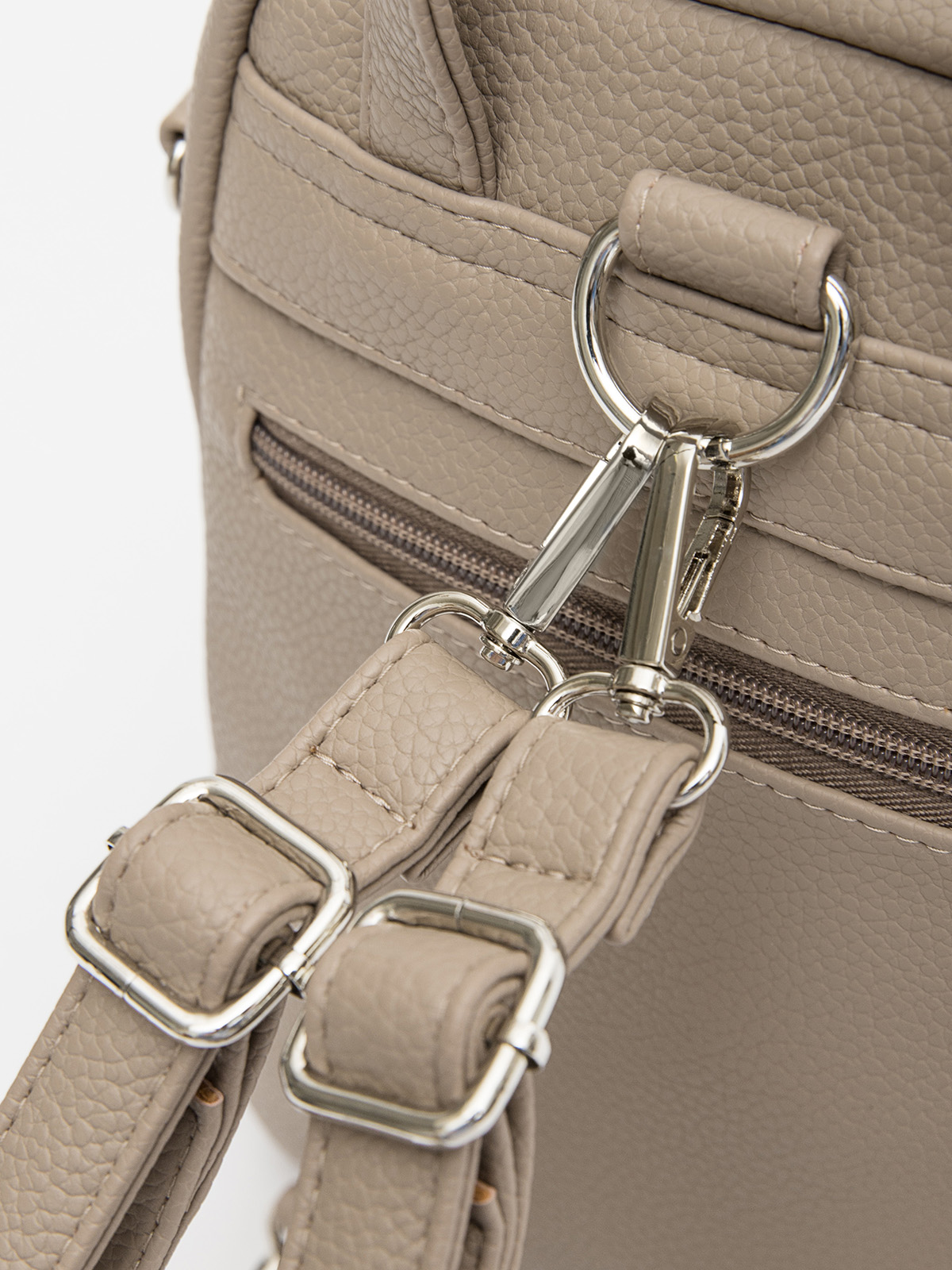 Аккуратный скругленный силуэт, слегка сужающийся кверху, выглядит современно и лаконично. Основное отделение на молнии дополнено двумя вертикальными карманами спереди — всё необходимое будет под рукой и в идеальном порядке.