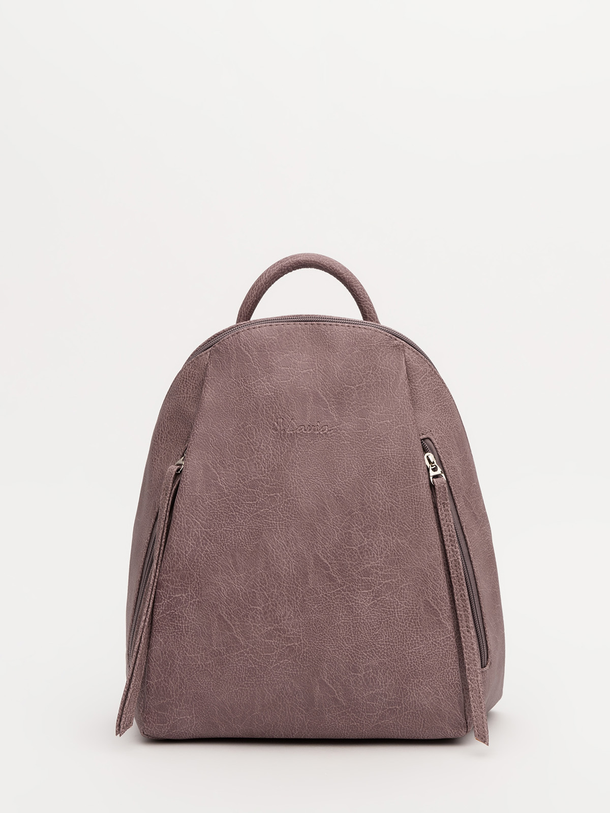 Его выразительную фактуру подчеркивает рельефное тиснение и мягкие складки по бокам, создающие объем без громоздкости. Передние прорезные карманы на спиральной молнии с кожаными наконечниками бегунков добавляют практичности, сохраняя элегантность линий.