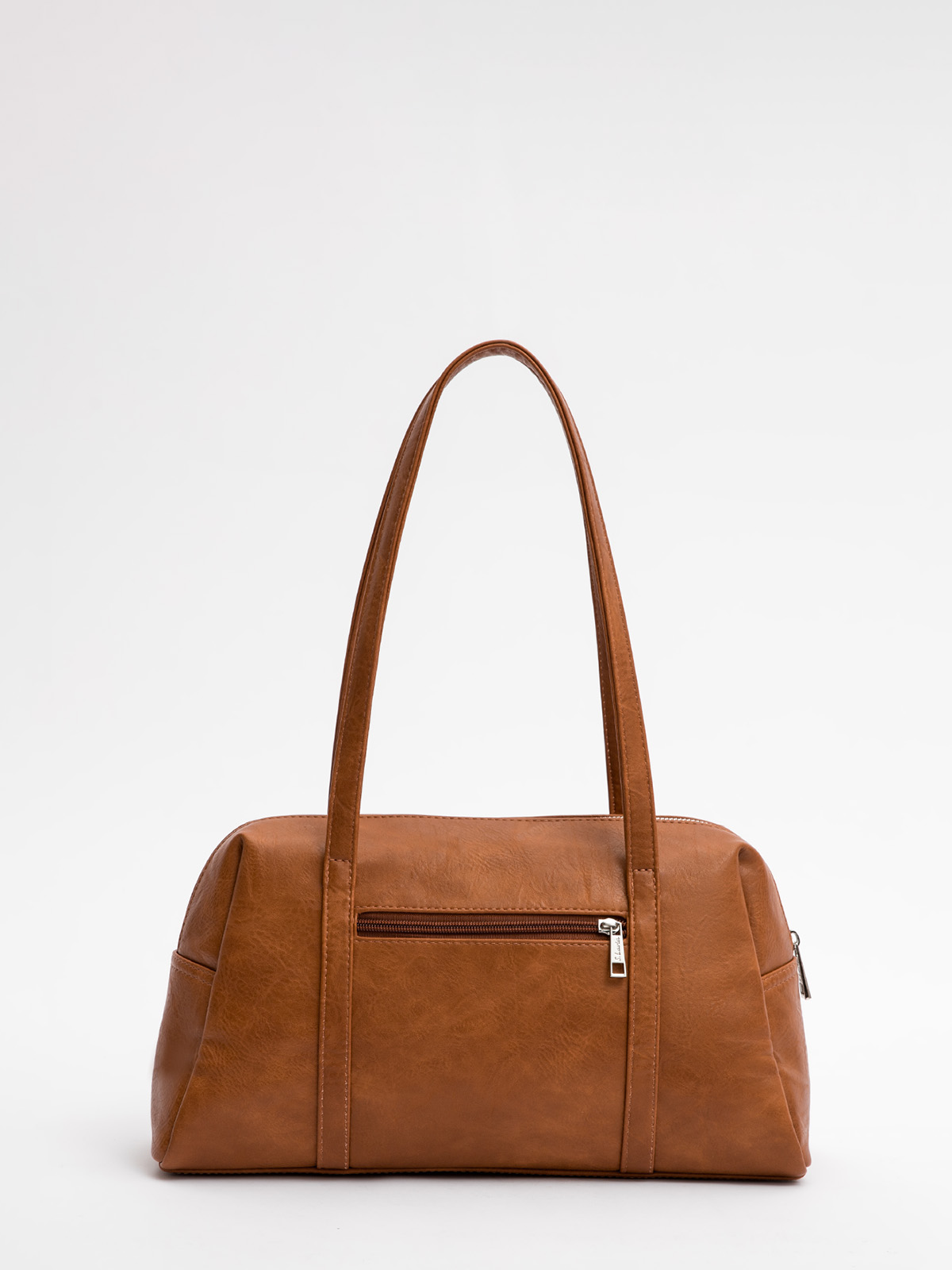 Эта женская сумка-саквояж габарита M с центральным входом на металлической молнии сочетает в себе винтажный шарм и современную практичность. Плоские настрочные ручки на передней и задней части дополнены тиснением на лицевой стороне и удобным карманом на молнии сзади. Внутри аккуратная окантовка, два стандартных кармана и дополнительный накладной карман на молнии для мелочей. Элегантный дизайн и продуманная функциональность делают эту сумку стильным аксессуаром на каждый день.