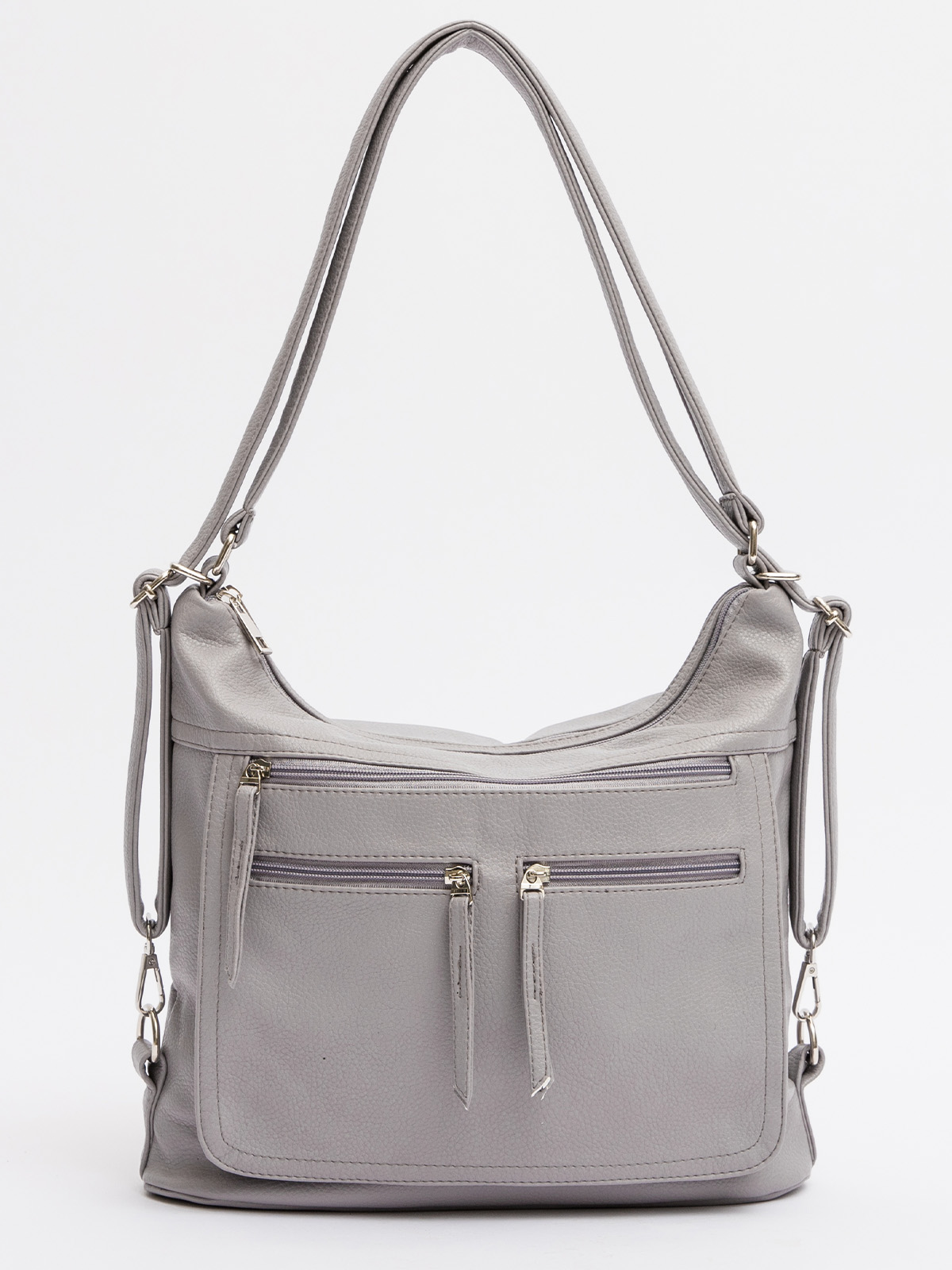 Практичная сумка с удобными передними карманами для ваших мелочей. А еще она легко превращается в рюкзак, нужно лишь протянуть ремешки. Рекомендуем!