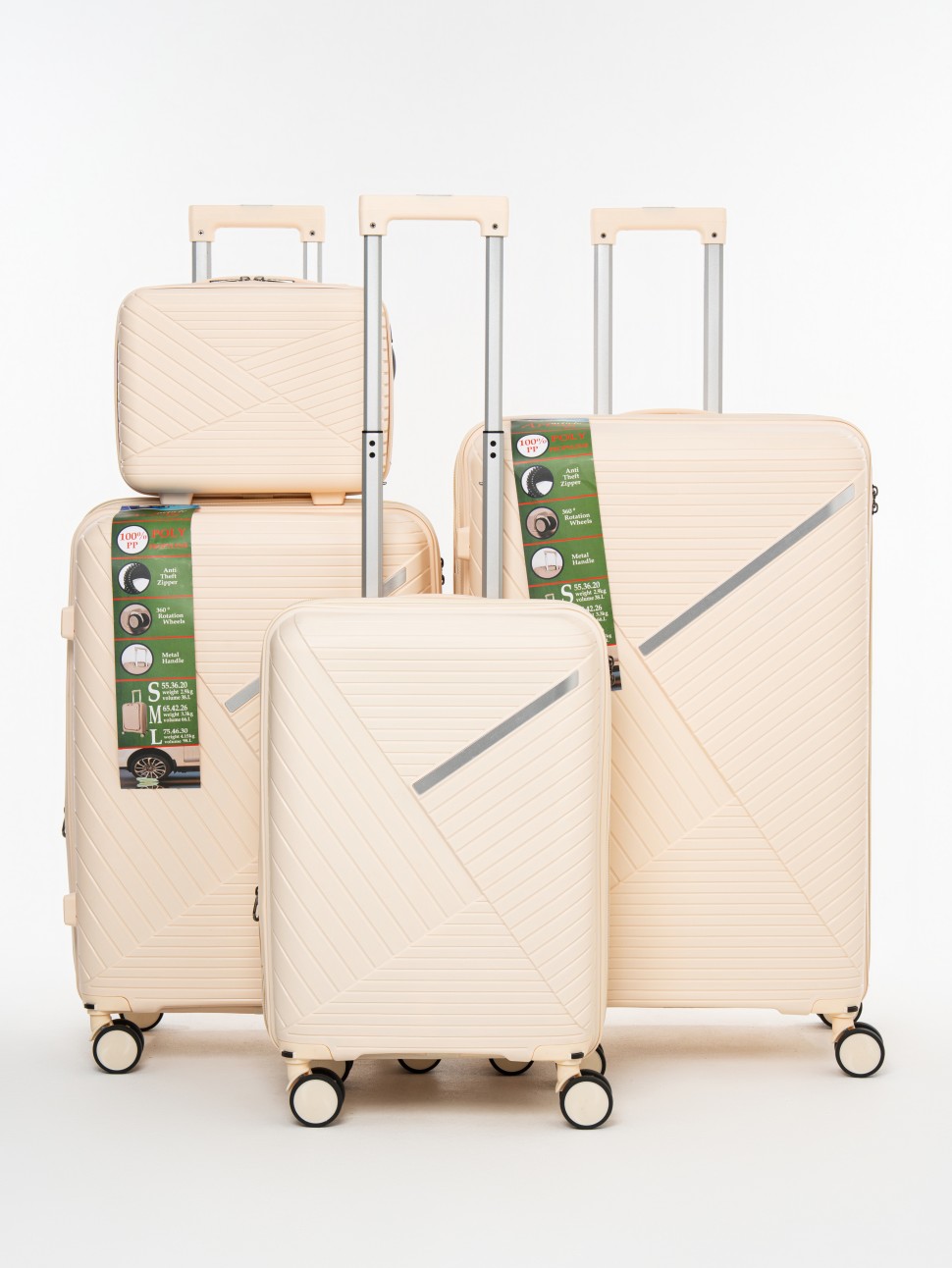 Набор дорожных чемоданов из прочного полипропилена. Практичное решение для поездок любой длительности: от коротких выездов до семейных путешествий. Чемоданы выполнены из ударопрочного полипропилена (PP). Материал легкий, не боится нагрузок, устойчив к царапинам и перепадам температуры. Жесткий корпус хорошо защищает вещи в дороге. Каждый чемодан оснащен четырьмя двойными колесами с вращением на 360 градусов. Чемодан легко катится в любом направлении и не требует усилий при движении. Телескопическая металлическая ручка фиксируется по высоте. Встроенный кодовый замок обеспечивает базовую защиту багажа. Молния плотная, надежная, с защитой от самопроизвольного раскрытия. Внутри продуманная организация пространства. Одна сторона с фиксирующими ремнями, вторая с отделением на молнии и сетчатым карманом. Подходит для аккуратной укладки одежды и аксессуаров.