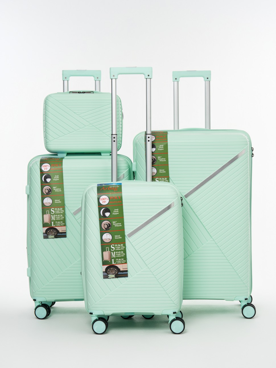 • комплект 4 штуки: S + M + L + дополнительный чемодан (удобно для семьи или частых поездок), (12кг)