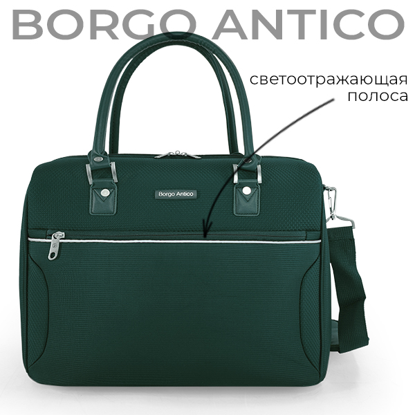 Бьюти-кейс Borgo Antico. Материал: полиэстер на подложке EVA +отдельные элементы из искусственной кожи. Высота ручек 15см. Модель закрывается на реверсивную молнию с двумя бегунками. Специальная форма бегунков позволяет использовать навесной кодовый замок (не входит в комплект). Внутри расположены: кармашек с клапаном на липучке, 5 отсеков для мелочей и карман на молнии. На передней стенке находится отдел на молнии и светоотражающая полоска. На спинке размещено крепление на выдвижную ручку чемодана. Дно бьюти-кейса защищают 4 "ножки". Съемный плечевой ремень с наплечником регулируется по длине (максимальная длина ремня 138 см).