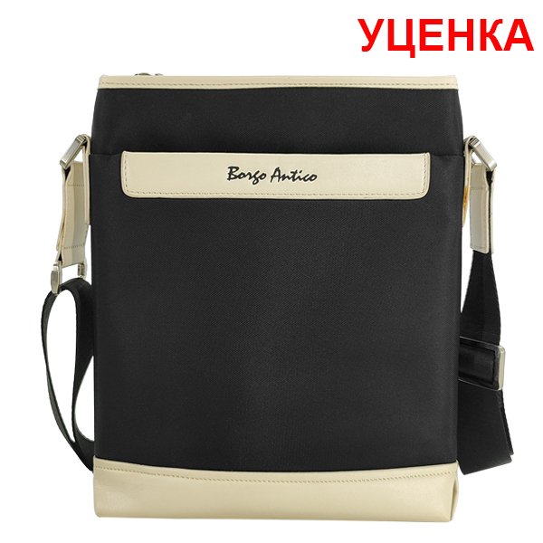 УЦЕНКА. Следы клея и небольшие потертости кожзама. Сумка мужская Borgo Antico. X 317-2 black-white